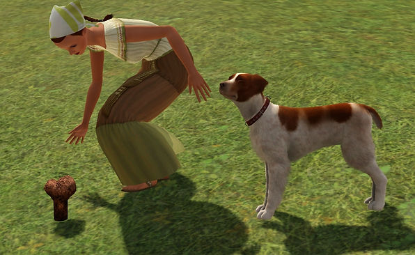 - Brioche : Waaaff ! "Viens voir j'ai trouvé un drôle de truc qui sent bizarre !"